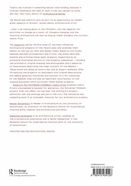 This first book in the unprecedented SuperCrit series examines Cedric Priceâ s groundbreaking Potteries Thinkbelt project from the 1960s. Highly illustrated and with contemporary criticism, this is a book not to be missed!