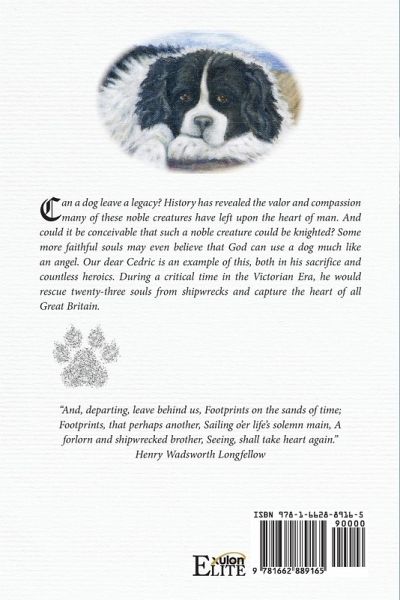 Cedric - Footprints in the Sand is an epoch dog tale. Inspired by the true story of a shipwrecked Newfoundland dog who wandered into a small coastal village. Finding his way to the end of a pier, he would spend the remainder of his years rescuing twenty-three people from other shipwrecks. During the Victorian Era, the great English painter, Sir Edwin Landseer, did a portrayal of the dog with the sea and gulls behind him. However, it was painted thirty years after the dog had died and there is little known about this remarkable creature. With a spark of creative industry, Barry Stebbing began filling in many of the blanks in this masterful tale of historical fiction believing it is a true classic in the making. Cedric is a delightful read for all ages. Written with a touch of prose, it allows the reader's imagination to wander into a wonderful era. Along with following Cedric as he fights his way through tumultuous seas to rescue shipwrecked souls, the reader follows the life of a young aspiring artist and that of many other intriguing Dickens-like characters, traveling through various chapters with a soft flow of faith and romance. Animal stories invariably have a way of touching one's heart and the author's purpose is to bring the reader to a sublime place above the mundane cares of the world; to ponder upon things that are good, and pure, and uplifting, long after the final page is read.