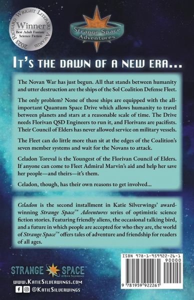 It's the dawn of a new era...¿ The Novan War has just begun. All that stands between humanity and utter destruction are the ships of the Sol Coalition Defense Fleet. ¿The only problem? None of those ships are equipped with the all-important Quantum Space Drive which allows humanity to travel between planets and stars at a reasonable scale of time. The Drive needs Florivan QSD Engineers to run it, and Florivans are pacifists. Their Council of Elders has never allowed service on military vessels. ¿The Fleet can do little more than sit at the edges of the Coalition's seven member systems and wait for the Novans to attack. ¿Celadon Toreval is the Youngest of the Florivan Council of Elders. If anyone can come to Fleet Admiral Marvin's aid and help her save her people-and theirs-it's them. ¿Celadon, though, has their own reasons to get involved...¿¿The time to act has come. Celadon: A Strange Space¿ Novel received the 2023 Richard Wright Literary Award for Best Adult Science Fiction/Fantasy from the Memphis Public Libraries. It is the second installment in Katie Silverwings' award-winning Strange Space¿ Adventures series of optimistic science fiction stories. Featuring friendly aliens, the occasional talking bird, and a future in which people are accepted for who they are, the world of Strange Space¿ offers tales of adventure and friendship for readers of all ages.
