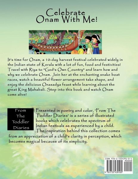 It's time for Onam, a 10-day harvest festival celebrated widely in the Indian state of Kerala with a lot of fun, food and festivities! Travel with Riya to "God's Own Country" and learn how and why we celebrate Onam. Join her at the enchanting snake boat races, watch a beautiful flower arrangement take shape, and enjoy the delicious Onasadya feast while learning about the great King Mahabali. Step into this book and watch Onam come alive! 'From The Toddler Diaries' is a series of illustrated books which celebrates the spectrum of Indian festivals as experienced by a child. Presented in poetry…mehr