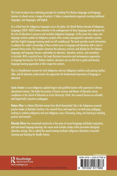 This book introduces key underlying principles for teaching First Nations languages and language learners in schools across a range of contexts. It takes a comprehensive approach covering traditional languages, new languages and English.