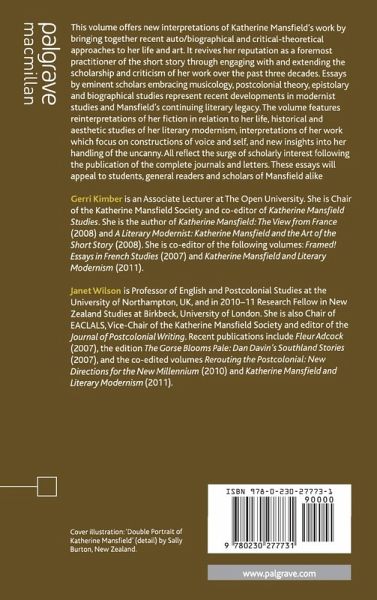 Acknowledgements Abbreviations Notes on Contributors Introduction; G.Kimber & J.Wilson PART I: BIOGRAPHICAL READINGS AND FICTION Signing Off: Katherine Mansfield's Last Year; V.O'Sullivan Katie and Chummie: Death in the Family; J.L.Mitchell 'A Furious Bliss': Katherine Mansfield and John Middleton Murry 1916-1918; S.J.Kaplan PART II: MANSFIELD AND MODERNITY Mansfield as Colonial Modernist: Difference Within; E.Boehmer Leaping into the Eyes - Mansfield as a Cinematic Writer; S.Sandley Katherine Mansfield and Music: Nineteenth-Century Echoes; D.da Sousa Correa 'Is This Play?' Katherine Mansfield's Playframes; J.K.Stotz PART III: PSYCHOANALYTICAL READINGS Katherine Mansfield's Uncanniness; C.Hanson A Trickle of Voice: Katherine Mansfield and the Modernist Moment of Being; J.Paccaud-Huguet 'Ah, what is it? - that I heard'. The Sense of Wonder in Katherine Mansfield's Stories and Poems; A.Mounic Cold Brains and Birthday Cake: The Art of 'Je ne parle pas français'; A.Smith PART IV: AUTOBIOGRAPHY AND FICTION 'Where is Katherine?': Longing and (Un)belonging in Katherine Mansfield's Art and Life; J.Wilson Mansfield and Dickens: 'I am not reading Dickens idly'; A.Smith 'Not always swift and breathless': Katherine Mansfield and the Familiar Letter; A.Jackson Meetings with 'The Great Ghost'; C.K.Stead Select Bibliography Index