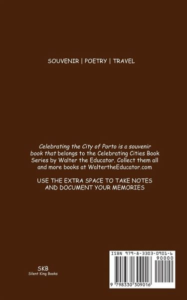 Celebrating the City of Porto is a little collectible souvenir book that belongs to the Celebrating Cities Book Series by Walter the Educator. USE THE EXTRA SPACE TO TAKE NOTES AND DOCUMENT YOUR MEMORIES. Collect them all and more books at WaltertheEducator.com.