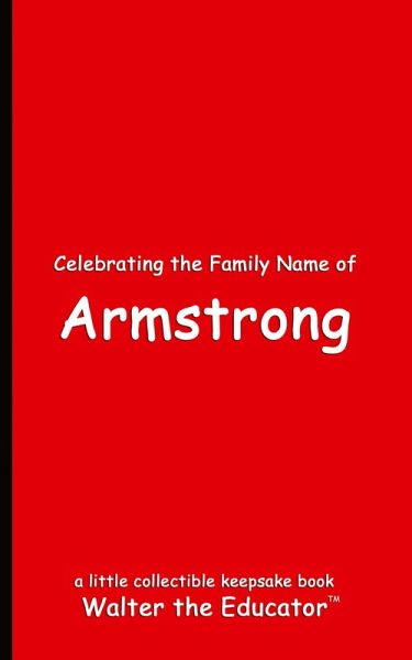 Celebrating the Family Name of Armstrong is a memory book that belongs to the Celebrating Family Name Book Series by Walter the Educator. Collect them all and more books at WaltertheEducator.com. USE THE EXTRA SPACE TO DOCUMENT YOUR FAMILY MEMORIES THROUGHOUT THE YEARS