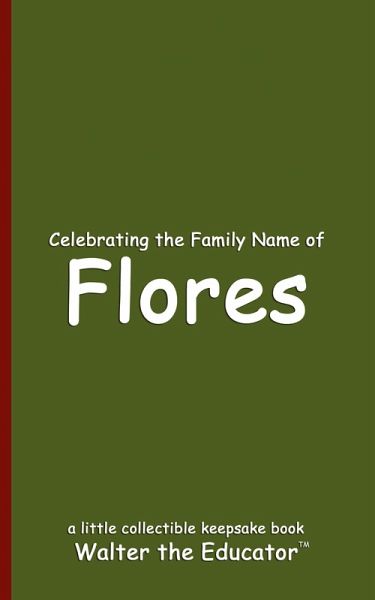 Celebrating the Family Name of Flores is a memory book that belongs to the Celebrating Family Name Book Series by Walter the Educator. Collect them all and more books at WaltertheEducator.com. USE THE EXTRA SPACE TO DOCUMENT YOUR FAMILY MEMORIES THROUGHOUT THE YEARS