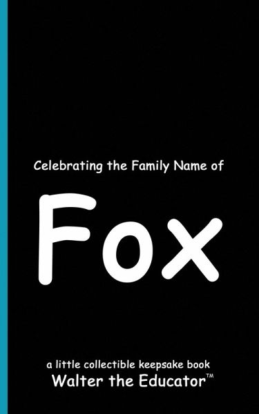 Celebrating the Family Name of Fox is a memory book that belongs to the Celebrating Family Name Book Series by Walter the Educator. Collect them all and more books at WaltertheEducator.com. USE THE EXTRA SPACE TO DOCUMENT YOUR FAMILY MEMORIES THROUGHOUT THE YEARS