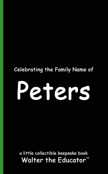 Celebrating the Family Name of Peters is a memory book that belongs to the Celebrating Family Name Book Series by Walter the Educator. Collect them all and more books at WaltertheEducator.com. USE THE EXTRA SPACE TO DOCUMENT YOUR FAMILY MEMORIES THROUGHOUT THE YEARS
