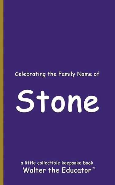 Celebrating the Family Name of Stone is a memory book that belongs to the Celebrating Family Name Book Series by Walter the Educator. Collect them all and more books at WaltertheEducator.com. USE THE EXTRA SPACE TO DOCUMENT YOUR FAMILY MEMORIES THROUGHOUT THE YEARS