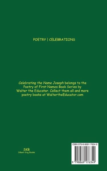 Celebrating the Name Joseph belongs to the Poetry of First Names Book Series by Walter the Educator. Collect them all and more poetry books at WaltertheEducator.com. This book is dedicated to everyone with the first name of Joseph.