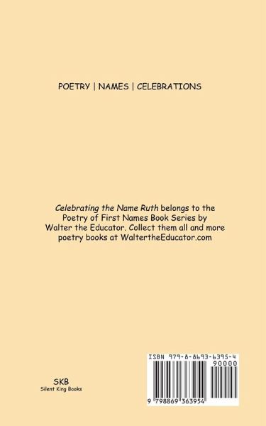 Celebrating the Name Ruth is a little collectible poem book that belongs to the Poetry of First Names Book Series by Walter the Educator. Collect them all and more poetry books at WaltertheEducator.com. This book is dedicated to everyone with the first name of Ruth.