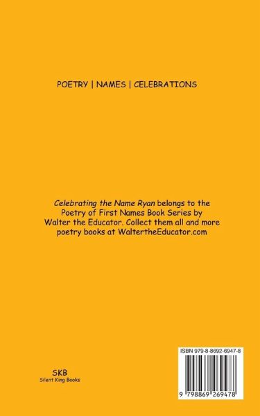 Celebrating the Name Ryan is a little collectible poem book that belongs to the Poetry of First Names Book Series by Walter the Educator. Collect them all and more poetry books at WaltertheEducator.com. This book is dedicated to everyone with the first name of Ryan.