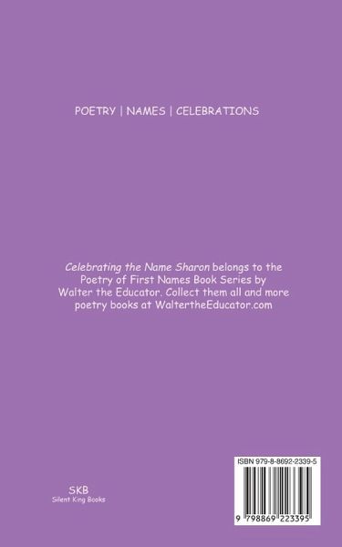 Celebrating the Name Sharon is a little collectible poem book that belongs to the Poetry of First Names Book Series by Walter the Educator. Collect them all and more poetry books at WaltertheEducator.com. This book is dedicated to everyone with the first name of Sharon.