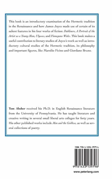 This book is an introductory examination of the Hermetic tradition in the Renaissance and how James Joyce made use of certain of its salient features in his four works of fiction: Dubliners, A Portrait of the Artist as a Young Man, Ulysses, and Finnegans Wake. This book makes a useful contribution to literary studies of Joyce's work as well as introductory cultural studies of the Hermetic tradition, its philosophy and important figures, like Marsilio Ficino and Giordano Bruno.