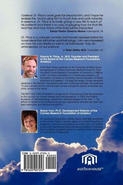 I believe Dr. Price's work goes far beyond him, and I hope herealizes this. God is using him to touch lives and work miracles.In essence, Dr. Price is actually giving a new life to each of his patients and there's no way of gauging how far that life reaches and how many other lives will be impacted. Senior Pastor Clarence Moore Indianapolis, IN Dr. Price is a uniquely humble and honest representative fornovel ideas that will further ophthalmology. I am very impressedon how he can relate so well to all individuals. Truly anambassador of our science. J. Peter Aiello, M.D. Scottsdale, AZ