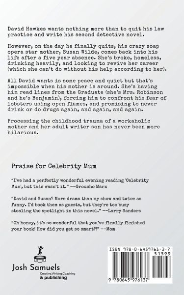 David Hawkes wants nothing more than to quit his law practice and write his second detective novel. However, on the day he finally quits, his crazy soap opera star mother, Susan Wilde, comes back into his life after a five year absence. She's broke, homeless, drinking heavily, and looking to revive her career (which she can't do without his help according to her). All David wants is some peace and quiet but that's impossible when his mother is around. She's having him read lines from the Graduate (she's Mrs. Robinson and he's Benjamin), forcing him to confront his fear of lobsters using open flames, and promising to never drink or do drugs again, and again, and again. Processing the childhood trauma of a famous workaholic mother and her adult writer son has never been more hilarious.