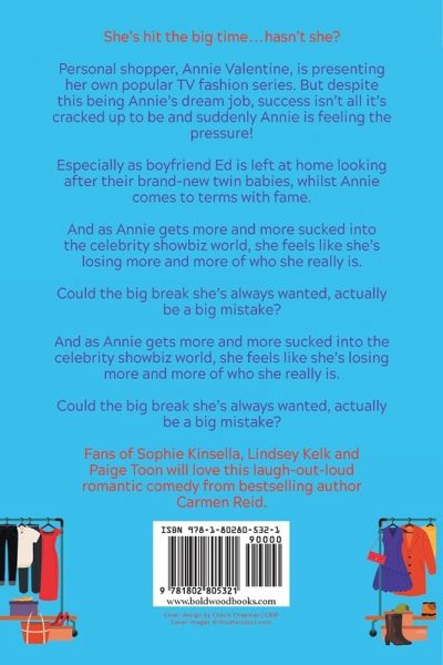 She's hit the big time...hasn't she? Personal shopper, Annie Valentine, is presenting her own popular TV fashion series. But despite this being Annie's dream job, success isn't all it's cracked up to be and suddenly Annie is feeling the pressure! Especially as boyfriend Ed is left at home looking after their brand-new twin babies, whilst Annie comes to terms with fame. And as Annie gets more and more sucked into the celebrity showbiz world, she feels like she's losing more and more of who she really is. Could the big break she's always wanted, actually be a big mistake? Fans of Sophie Kinsella, Lindsey Kelk and Paige Toon will love this laugh-out-loud romantic comedy from bestselling author Carmen Reid. What readers are saying! "If you love shopping as much as you love a great read, try this. Wonderful." Bestselling author, Katie Fforde "Annie Valentine is a wonderful character - I want her to burst into my life and sort out my wardrobe for me!" Bestselling author, Jill Mansell "You will enjoy getting to know Annie Valentine; laughing with her and crying with her. You may even fall in love with her . . . I have! A fantastic read!"⭐ ⭐ ⭐ ⭐ ⭐ Reader review "Fantastic read, couldn't put it down" ⭐ ⭐ ⭐ ⭐ ⭐ Reader review "Can't wait to read the next one!"⭐ ⭐ ⭐ ⭐ ⭐ Reader review