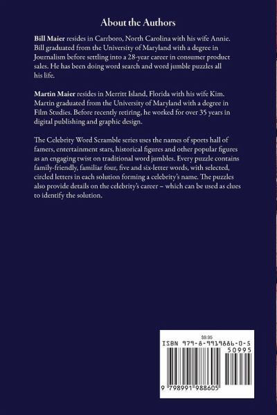 The Celebrity Word Scramble series uses the names of sports hall of famers, entertainment stars, historical figures and other popular figures as an engaging twist on traditional word jumbles. Every puzzle contains family-friendly, familiar four, five and six-letter words, with selected, circled letters in each solution forming a celebrity's name. The puzzles also provide details on the celebrity's career - which can be used as clues to identify the solution. CWS Famous Names in History offers 108 puzzles on an assortment of noteworthy explorers, statesman, world leaders and changemakers. From Aristotle to Harriet Tubman, you are sure to enjoy these challenging and fun word scrambles while perhaps learning something new. Biographical clues are provided to help in solving the puzzle but we recommend having a 3X5 card to block the clues until you really need them. Enjoy!