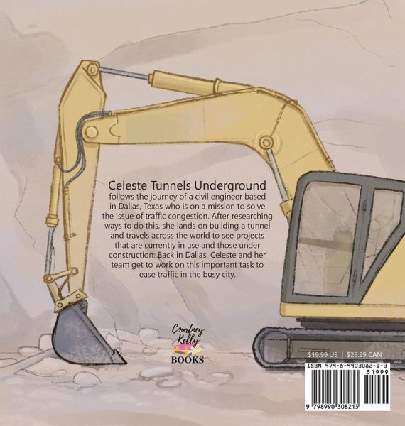 Celeste Tunnels Underground follows the journey of a civil engineer based in Dallas, Texas who is on a mission to solve the issue of traffic congestion. After researching ways to do this, she lands on building a tunnel and travels across the world to see projects that are currently in use and those under construction. Back in Dallas, Celeste and her team get to work on this important task and eases traffic in the busy city. With a nod to famous tunnel projects like the English Channel Tunnel and Boston's Big Dig, this fun and educational story encourages children from diverse backgrounds to pursue careers in construction and engineering while opening their eyes to the fascinating world of tunnels. This is the second book of the Celeste Saves the City collection. To find out more about the first book, visit www.courtneykellybooks.com or search for it anywhere books are sold.