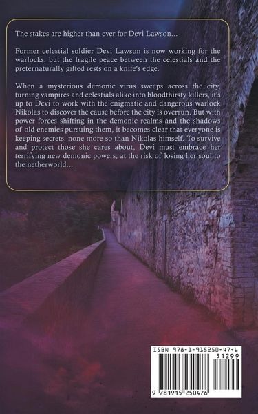 The stakes are higher than ever for Devi Lawson. Former celestial soldier Devi Lawson is now working for the warlocks, but the fragile peace between the celestials and the preternaturally gifted rests on a knife's edge. When a mysterious demonic virus sweeps across the city, turning vampires and celestials alike into bloodthirsty killers, it's up to Devi to work with the enigmatic and dangerous warlock Nikolas to discover the cause before the city is overrun. But with power forces shifting in the demonic realms and the shadows of old enemies pursuing them, it becomes clear that everyone is keeping secrets, none more so than Nikolas himself. To survive and protect those she cares about, Devi must embrace her terrifying new demonic powers, at the risk of losing her soul to the netherworld...