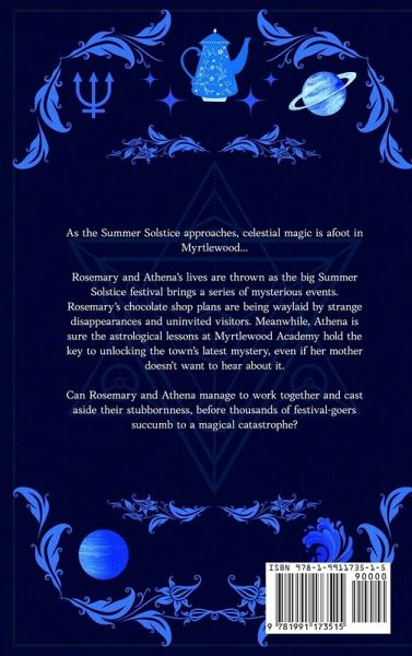 As the Summer Solstice approaches, celestial magic is afoot in Myrtlewood... Rosemary and Athena's lives are thrown as the big Summer Solstice festival brings a series of mysterious events. Rosemary's chocolate shop plans are being waylaid by strange disappearances and uninvited visitors. Meanwhile, Athena is sure the astrological lessons at Myrtlewood Academy hold the key to unlocking the town's latest mystery, even if her mother doesn't want to hear about it. Can Rosemary and Athena manage to work together and cast aside their stubbornness, before thousands of festival-goers succumb to a magical catastrophe?