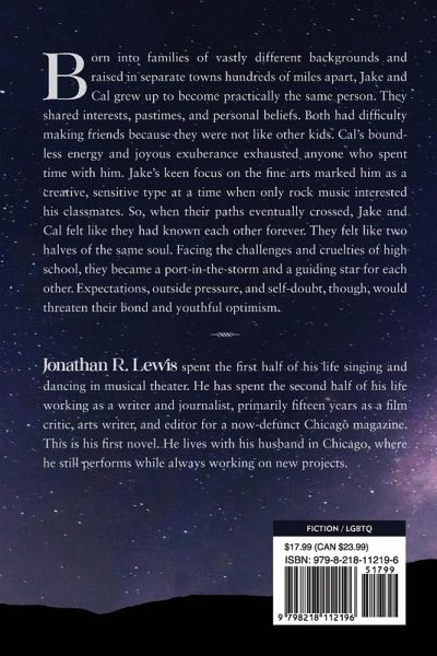 Born into families of vastly different backgrounds and raised in separate towns hundreds of miles apart, Jake and Cal grew up to become practically the same person. They shared interests, pastimes, and personal beliefs. Both had difficulty making friends because they were not like other kids. Cal's boundless energy and joyous exuberance exhausted anyone who spent time with him. Jake's keen focus on the fine arts marked him as a creative, sensitive type at a time when only rock music interested his classmates. So, when their paths eventually crossed, Jake and Cal felt like they had known each other forever. They felt like two halves of the same soul. Facing the challenges and cruelties of high school, they became a port-in-the-storm and a guiding star for each other. Expectations, outside pressure, and self-doubt, though, would threaten their bond and youthful optimism.