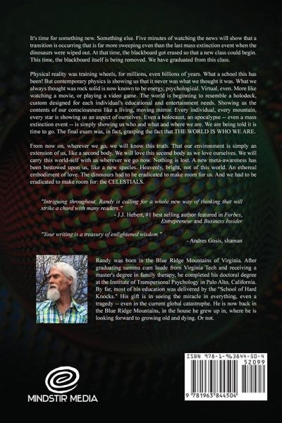 It's time for something new. Something else. Five minutes of watching the news will show that a transition is occurring that is far more sweeping even than the last mass extinction event when the dinosaurs were wiped out. At that time, the blackboard got erased so that a new class could begin. This time, the blackboard itself is being removed. We have graduated from this class. Physical reality was training wheels, for millions, even billions of years. What a school this has been! But contemporary physics is showing us that it never was what we thought it was. What we always thought was rock solid is now known to be energy, psychological. Virtual, even. More like watching a movie, or playing a video game. The world is beginning to resemble a holodeck, custom designed for each individual's educational and entertainment needs. Showing us the contents of our consciousness like a living, moving mirror. Every individual, every mountain, every star is showing us an aspect of ourselves. Even a holocaust, a apocalypse -- even a mass extinction event -- is simply showing us who and what and where we are. We are being told it is time to go. The final exam was, in fact, grasping the fact that THE WORLD IS WHO WE ARE. From now on, wherever we go, we will know this truth. That our environment is simply an extension of us, like a second body. We will love this second body as we love ourselves. We will carry this world-self with us wherever we go now. Nothing is lost. A new meta-awareness has been bestowed upon us, like a new species. Heavenly, bright, not of this world. An ethereal embodiment of love. The dinosaurs had to be eradicated to make room for us. And we had to be eradicated to make room for: the CELESTIALS.
