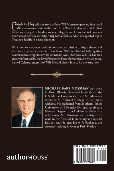 Celestra's Plan tells the story of how Wil Mossman grew up in a small Midwestern town around the time of the War in Afghanistan. Wil thinks he has met the girl of his dreams at a college dance. However, Wil does not know about her true identity. A trip to California and an unexpected trip to Texas sets his life in a new direction. Wil's love for a woman leads him on a rescue mission to Afghanistan, and then to a large cattle ranch in Texas. Soon, Wil finds himself fighting drug dealers in his attempt to save the woman he loves. However, Wil's life has been greatly influenced by the love of two other beautiful women. A mystical muse, named Celestra, enters into Wil's life and directs him to his one true love.