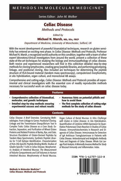 Research into gluten sensitivity has never been more popular nor more exciting. Thus a call for a new book, Celiac Disease: Methods and Protocols, devoted entirely to techniques and technology seemed a most appropriate undertaking. I am therefore grateful to Professor J. M. Walker for inviting me to complete this task for Humana Press. To do this would have been imp- sible without the contributions of friends and colleagues from around the world who have devoted so much interest to the project. It has also been necessary for them to master the unique chapter-writing skills required of every ma- script published in this series of laboratory monographs. With regard to gluten sensitivity we are in a period of great change, occasioned by the introduction of reproducible methods for cloning lymp- cytes, the application of physical methods to identify gluten sequences as T-cell antigens, the study of peptide responses in vitro and in vivo by either jejunal or rectal challenge, elucidating the locations of other genes concerned in pathogenesis, or the use of elegant immunohistocytochemical and mRNA probing techniques for analyzing the finer points of the mucosal inflam- tory response to gluten.