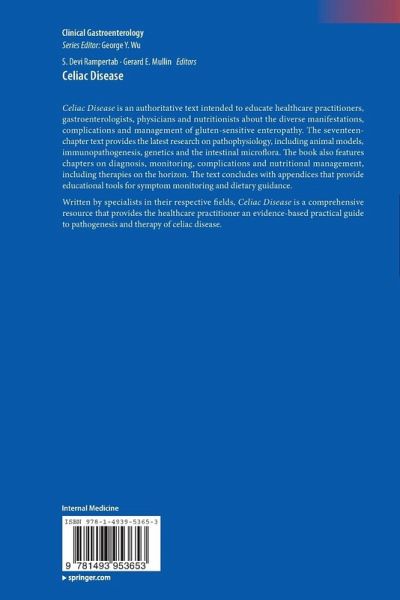 Introduction.- Definition of Celiac Disease and Gluten Sensitivity.- Epidemiology of Celiac Disease.- The Pathophysiology of Celiac Disease.- Immunogenetics of Celiac Disease.- Using Animal Models of Celiac Disease to Understand the Role of MHC II.- Role of Gut Microbes in Celiac Disease Risk and Pathogenesis.- Presentation of Celiac Disease in Children and Adults.- Diagnosis of Celiac Disease.- Nutrition in Celiac Disease.- Dietary Supplements in Celiac Disease.- Monitoring and Follow-up of Patients with Celiac Disease.- Special Considerations in Children and Young Adults with Celiac Disease.- Novel and Experimental Therapies on the Horizon.- Morbidity and Mortality Associated with Celiac Disease.- Refractory Celiac Disease.- Celiac Disease: Dispelling Misconceptions and Myths.- Summary of Recommendations from the American College of Gastroenterology Celiac Disease Guidelines.- Resources for Celiac Disease Practitioners and Patients.- Taxonomic Relationships of the Major Cereal Grains.- Some Potential Sources of Hidden Gluten.- Key Elements in the Management of Celiac Disease.- Celiac Iceberg.- An Approach to Gluten Challenge for the Diagnosis or Exclusion of Celiac Disease.- An Approach to the Monitoring of Celiac Disease.- An Approach to the Diagnosis of Celiac Disease.- An Approach to the Patient with Non-Responsive Celiac Disease.- Dietary Reference Intakes (DRIs): Recommended Dietary Allowance and Adequate Intakes, Vitamins and Elements.- Dietary Reference Intakes (DRIs): Tolerable Upper Intake Levels, Vitamins and Elements.