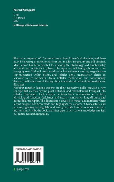 Working together, leading experts in their respective fields provide a new concept that reaches beyond plant nutrition and plasmalemma transport into cellular physiology. Each chapter contains basic information on uptake, physiological function, deficiency and toxicity syndromes, long-distance and intracellular transport. The discussion is devoted to metals and nutrients where recent progress has been made and highlights the aspects of homeostasis and sensing, signaling and regulation, drawing parallels to other organisms including humans. Finally, the book identifies gaps in our current knowledge and lays out future research directions.