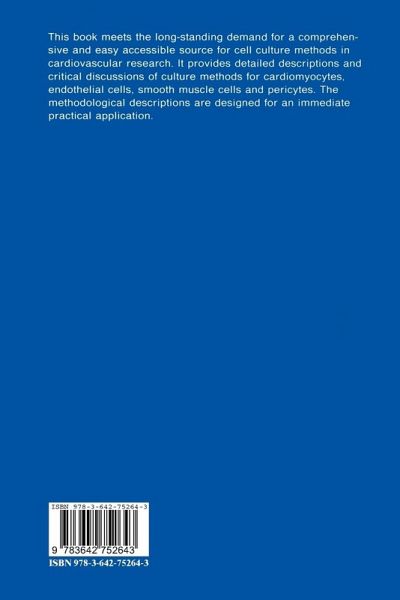 In the cardiovascular sciences, an increasing demand for the use of modern methods of cell biology has developed. The use of specific cell culture models of the various tissues involved is essential for most of these novel approaches. This book meets the demand for acomprehensive and easy accessible source for cell cul- ture methods in cardiovascular research as it was not previously available. The basic methods for cultures of cardiomyocytes (embryonic and adult), endothelial cells (micro- and macrovascular), smooth muscle cells and pericytes are described in detail by an international selection of experts. Special chapters discuss the use of growth factors and attachment substrates, techniques for co-cultures, cultures on permeable filter membranes and microcarrier cultures. The methodological descriptions are sufficiently detailed for an immediate application in the laboratory. All chapters also contain a critical evaluation of alternative approaches.