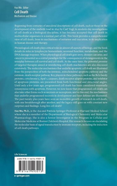 Physiological cell death plays critical roles in almost all aspects of biology, and the book details its roles in lymphocyte homeostasis, neuronal function, metabolism, and the DNA damage response. When physiological cell death goes awry, diseases can arise, and cancer is presented as a central paradigm for the consequences of derangements in the interplay between cell survival and cell death. At the same time, the potential promise of targeted therapies aimed at interdicting cell death machineries are also discussed extensively. The molecular mechanisms that underlie apoptotic cell death are illustrated from the perspectives of both the intrinsic, mitochondrial apoptotic pathway and the extrinsic, death receptor pathway. Key players in these pathways, such as the Bcl2 family proteins, cytochrome c, Apaf-1, caspases, death receptor adapter proteins, and inhibitor of apoptosis proteins, are presented from both functional and structural angles. Until only a few years ago, programmed cell death has been considered essentially synonymous with apoptosis. However, we now know that programmed cell death can also take other forms such as necrosis or necroptosis, and to this end, the mechanisms that underlie programmed necrosis in development and host defense are illustrated. The past twenty plus years have seen an incredible growth of research in cell death, with one breakthrough after another, and the legacy still goes on with constant new surprises and findings. Long live cell death!