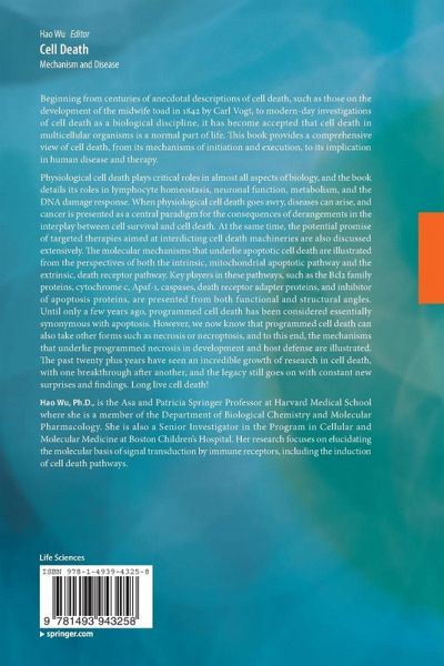 Physiological cell death plays critical roles in almost all aspects of biology, and the book details its roles in lymphocyte homeostasis, neuronal function, metabolism, and the DNA damage response. When physiological cell death goes awry, diseases can arise, and cancer is presented as a central paradigm for the consequences of derangements in the interplay between cell survival and cell death. At the same time, the potential promise of targeted therapies aimed at interdicting cell death machineries are also discussed extensively. The molecular mechanisms that underlie apoptotic cell death are illustrated from the perspectives of both the intrinsic, mitochondrial apoptotic pathway and the extrinsic, death receptor pathway. Key players in these pathways, such as the Bcl2 family proteins, cytochrome c, Apaf-1, caspases, death receptor adapter proteins, and inhibitor of apoptosis proteins, are presented from both functional and structural angles. Until only a few years ago, programmed cell death has been considered essentially synonymous with apoptosis. However, we now know that programmed cell death can also take other forms such as necrosis or necroptosis, and to this end, the mechanisms that underlie programmed necrosis in development and host defense are illustrated. The past twenty plus years have seen an incredible growth of research in cell death, with one breakthrough after another, and the legacy still goes on with constant new surprises and findings. Long live cell death!