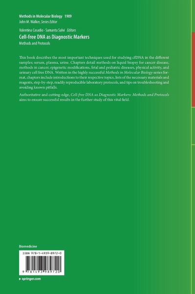 Cell Free DNA: Applications in Different Diseases.- Cell Free DNA: An Overview of Sample Types and Isolation Procedures.- Circulating Cell Free DNA and Cancer Therapy Monitoring: Methods and Potential.- Cell Free DNA in the Liquid Biopsy Context: Role and Differences between ctDNA and CTC Marker in Cancer Management.- Cell Free DNA Integrity: Applications.- Copy Number Variation Analysis on Cell Free Serum DNA.- Studying Copy Number Variations in Cell Free DNA: The Example of AR in Prostate Cancer.- dPCR Mutational Analyses in Cell-free DNA: A Comparison With Tissues.- From cfDNA to Sequencing: Workflows and Potentials.- Epigenetic Characterization of Cell Free DNA.- Quantitative Methylation-specific PCR: A Simple Method for Studying Epigenetic Modifications of Cell Free DNA.- Cell Free DNA in Pediatric Rhabdomyosarcoma: Potential and Challenges.- Bioinformatics Pipeline for Accurate Quantification of Fetal DNA Fraction in Maternal Plasma.- Circulating Cell-Free DNA in Physical Activities.- Urinary Cell Free DNA: Potential and Applications.- Urinary Cell Free DNA: Isolation, Quantification, Quality Assessment.