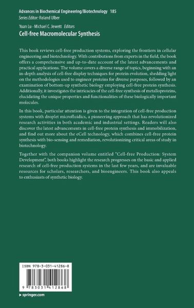 In this book, particular attention is given to the integration of cell-free production systems with droplet microfluidics, a pioneering approach that has revolutionized research activities in both academicand industrial settings. Readers will also discover the latest advancements in cell-free protein synthesis and immobilization, and find out more about the eCell technology, which combines cell-free protein synthesis with bio-sensing and remediation, revolutionizing critical areas of study in biotechnology.