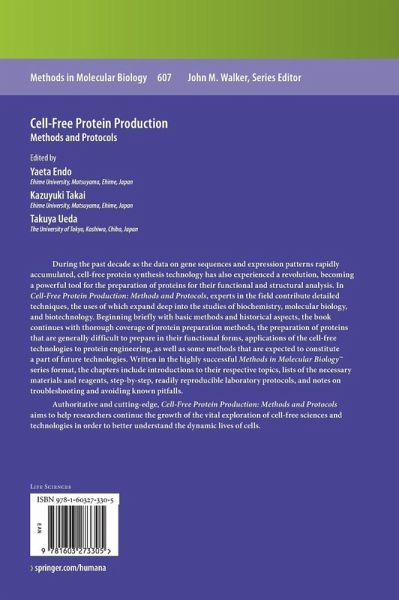 During the past decade as the data on gene sequences and expression patterns rapidly accumulated, cell-free protein synthesis technology has also experienced a revolution, becoming a powerful tool for the preparation of proteins for their functional and structural analysis. In Cell-Free Protein Production: Methods and Protocols, experts in the field contribute detailed techniques, the uses of which expand deep into the studies of biochemistry, molecular biology, and biotechnology. Beginning briefly with basic methods and historical aspects, the book continues with thorough coverage of protein preparation methods, the preparation of proteins that are generally difficult to prepare in their functional forms, applications of the cell-free technologies to protein engineering, as well as some methods that are expected to constitute a part of future technologies. Written in the highly successful Methods in Molecular Biology(TM) series format, the chapters include introductions to their respective topics, lists of the necessary materials and reagents, step-by-step, readily reproducible laboratory protocols, and notes on troubleshooting and avoiding known pitfalls.