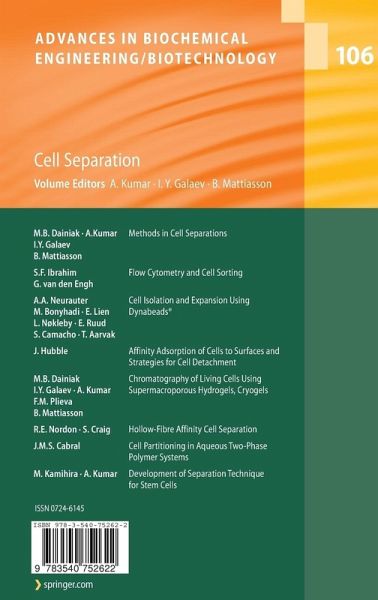 Cell separation, which was once limited to merely being a basic technique for fractionating different cell populations, has come a long way in the last two decades. New, advanced and more speci?c and selective techniques have emerged as the demand for isolating a speci?c cell type for various biological applications has increased. Ef?cient and cost-effective techniques for fr- tionation and isolation of target cell types are necessary to provide pure cell populations for diagnostics, biotechnological and biomedical applications. One can see a considerable need, both in biomedical research and in di- nostic medicine, for the speci?c separation of a discrete population of cells from a mixture. For example, in the ?eld of tissue engineering, isolation of stemcellsfromtissuesororgansisofparticularlygreatimportance.Moreover, understanding cell developmental pathways becomes increasingly signi?cant as diagnosis and treatment of diseases turns more to the molecular level. The diagnosis of cell-related diseases requires methods of detection, isolation and theanalysisofindividualcells,regardlessoftheirrelativecontentinthetissue. Since cell-based therapies now turn towards more realistic medical options, developing an effective separation system for large-scale cell separation has becomechallengingresearchgoalforcellbiologistsandbiotechnologists.The ideal technique should provide in a short time a good yield of cells with high puritywhile maintaining cellfunction.Despite the growingneed formethods to separate cells into cell subpopulations, the existing cell-separation te- niques stillhave somelimitations when the desired degree ofperformance on apreparativescaleisrequired.Wewillseemoreresearchfocusinthisdirection in the future. The traditional techniques of micro?ltration, ultra?ltration and ultrac- trifugation, which exploit differences in cell size, shape and density, have remainedtheworkhorsesdespitelowspeci?cityandproblemswithscalingup.