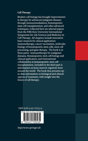 All chapters include innovative basic research for clinical application: immunotherapy, cancer vaccination, molecular biology of hematopoietic stem cells, stem cell processing, and gene therapy.