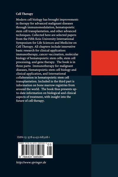 All chapters include innovative basic research for clinical application: immunotherapy, cancer vaccination, molecular biology of hematopoietic stem cells, stem cell processing, and gene therapy.