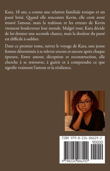 Kara, 18 ans, a connu une relation familiale toxique et un passé brisé. Quand elle rencontre Kevin, elle croit avoir trouvé l'amour, mais la trahison et les erreurs de Kevin viennent bouleverser leur monde. Malgré tout, Kara décide de lui donner une seconde chance, mais la douleur du passé est difficile à oublier. Dans ce premier tome, suivez le voyage de Kara, une jeune femme déterminée à se relever encore et encore après chaque épreuve. Entre amour, déception et reconstruction, elle cherche à se retrouver, à guérir et à comprendre ce que signifie vraiment l'amour et la résilience.