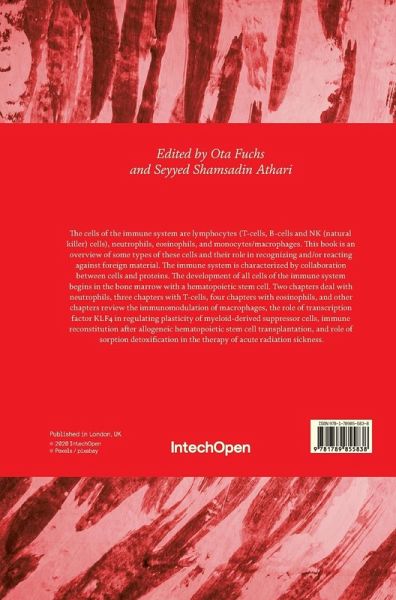 The cells of the immune system are lymphocytes (T-cells, B-cells and NK (natural killer) cells), neutrophils, eosinophils, and monocytes/macrophages. This book is an overview of some types of these cells and their role in recognizing and/or reacting against foreign material. The immune system is characterized by collaboration between cells and proteins. The development of all cells of the immune system begins in the bone marrow with a hematopoietic stem cell. Two chapters deal with neutrophils, three chapters with T-cells, four chapters with eosinophils, and other chapters review the immunomodulation of macrophages, the role of transcription factor KLF4 in regulating plasticity of myeloid-derived suppressor cells, immune reconstitution after allogeneic hematopoietic stem cell transplantation, and role of sorption detoxification in the therapy of acute radiation sickness.