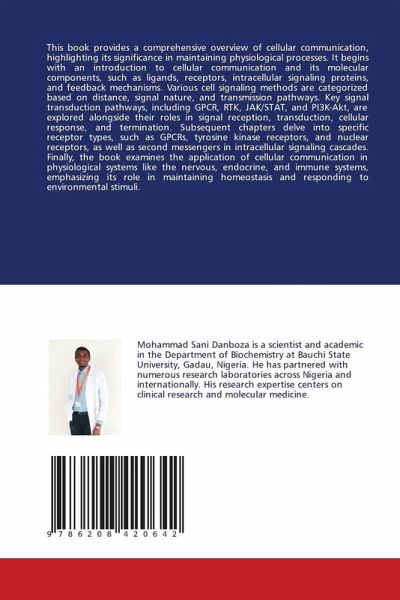 This book provides a comprehensive overview of cellular communication, highlighting its significance in maintaining physiological processes. It begins with an introduction to cellular communication and its molecular components, such as ligands, receptors, intracellular signaling proteins, and feedback mechanisms. Various cell signaling methods are categorized based on distance, signal nature, and transmission pathways. Key signal transduction pathways, including GPCR, RTK, JAK/STAT, and PI3K-Akt, are explored alongside their roles in signal reception, transduction, cellular response, and termination. Subsequent chapters delve into specific receptor types, such as GPCRs, tyrosine kinase receptors, and nuclear receptors, as well as second messengers in intracellular signaling cascades. Finally, the book examines the application of cellular communication in physiological systems like the nervous, endocrine, and immune systems, emphasizing its role in maintaining homeostasis and responding to environmental stimuli.