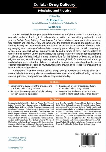 Comprehensive and up-to-date, Cellular Drug Delivery: Principles and Practice offers pharmaceutical scientists a uniquely valuable reference resource devoted to illuminating the fundamentals, principles, and practice of cellular drug delivery today.