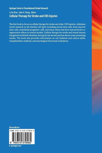 Cellular therapy for stroke and neural trauma has gained worldwide attention during the last decade and has shown some promising results. Various cells, including neural stem cells, bone marrow stem cells, endothelial progenitor cells, and many others have had protective or regenerative effects in animal models. The proposed book will address recent research on all relevant cell types. In addition, it will provide information on cell isolation and culture skills, transplantation methods, and neurological functional evaluations. This is the first book to focus on cellular therapy for stroke and other CNS injuries.