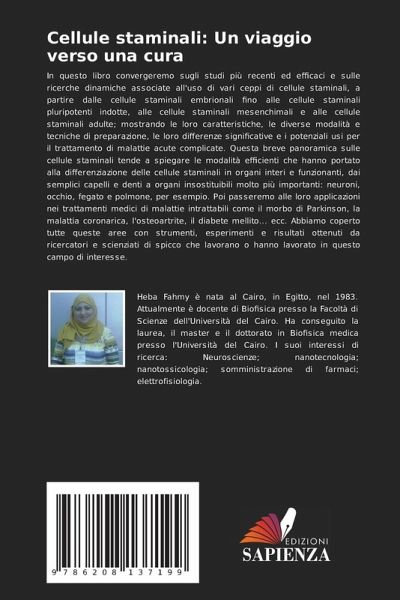In questo libro convergeremo sugli studi più recenti ed efficaci e sulle ricerche dinamiche associate all'uso di vari ceppi di cellule staminali, a partire dalle cellule staminali embrionali fino alle cellule staminali pluripotenti indotte, alle cellule staminali mesenchimali e alle cellule staminali adulte; mostrando le loro caratteristiche, le diverse modalità e tecniche di preparazione, le loro differenze significative e i potenziali usi per il trattamento di malattie acute complicate. Questa breve panoramica sulle cellule staminali tende a spiegare le modalità efficienti che hanno portato alla differenziazione delle cellule staminali in organi interi e funzionanti, dai semplici capelli e denti a organi insostituibili molto più importanti: neuroni, occhio, fegato e polmone, per esempio. Poi passeremo alle loro applicazioni nei trattamenti medici di malattie intrattabili come il morbo di Parkinson, la malattia coronarica, l'osteoartrite, il diabete mellito... ecc. Abbiamo coperto tutte queste aree con strumenti, esperimenti e risultati ottenuti da ricercatori e scienziati di spicco che lavorano o hanno lavorato in questo campo di interesse.