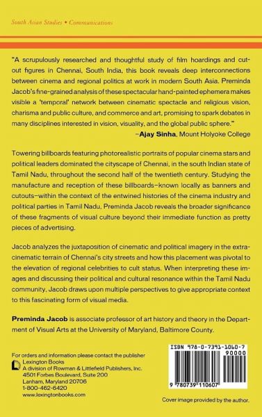 This book focuses attention on an aspect of India's dynamic and vibrant street art: billboard size advertisements, hand-painted for the entertainment cinema industry and local political parties, that unfurl mural-like across the urban landscape of Chennai, located in the southern state of Tamil Nadu, India. The making and consuming of this public art engenders a space for relay between film celebrities and political figures based on a visual cultural discourse of charisma.
