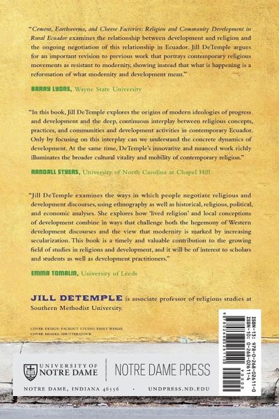 Cement, Earthworms, and Cheese Factories examines the ways in which religion and community development are closely intertwined in a rural part of contemporary Latin America. Using historical, documentary, and ethnographic data collected over more than a decade as an aid worker and as a researcher in central Ecuador, Jill DeTemple examines the forces that have led to this entanglement of religion and development and the ways in which rural Ecuadorians, as well as development and religious personnel, negotiate these complicated relationships. Technical innovations have been connected to religious change since the time of the Inca conquest, and Ecuadorians have created defensive strategies for managing such connections. Although most analyses of development either tend to ignore the genuinely religious roots of development or conflate development with religion itself, these strategies are part of a larger negotiation of progress and its meaning in twenty-first-century Ecuador. DeTemple focuses on three development agencies-a liberationist Catholic women's group, a municipal unit dedicated to agriculture, and evangelical Protestant missionaries engaged in education and medical work-to demonstrate that in some instances Ecuadorians encourage a hybridity of religion and development, while in other cases they break up such hybridities into their component parts, often to the consternation of those with whom religious and development discourse originate. This management of hybrids reveals Ecuadorians as agents who produce and reform modernities in ways often unrecognized by development scholars, aid workers, or missionaries, and also reveals that an appreciation of religious belief is essential to a full understanding of diverse aspects of daily life.