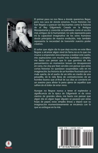 El primer paso no nos lleva a donde queremos llegar, pero nos saca de donde estamos. Pocas historias me han llegado a parecer tan fascinantes como la historia de el Rey Gilgamesh; Creada en la Antigua Mesopotamia y conocida actualmente como el escrito más antiguo de la humanidad, no solo representa para mí la capacidad imaginativa de los seres humanos desde principios de nuestra evolución, más también representa la necesidad de transmitir nuestro poder creativo. El soñar que algún día lo que dejo escrito en este libro llegase a alcanzar algún nivel de fama no es lo que me mueve a emprender esta empresa a realizar este sueño, mis aspiraciones son mucho más humildes y simples, me basta con pensar que lo que germinó de mis pensamientos en momentos tenues no desaparecerá en vano, me doy por bien servido con pensar que estas cortas historias no quedaran suspendidas solo en mi imaginación; las historia de un hombre frustrado por su mala suerte, de el sueño de un niño en medio de una pesadilla, de la vida llena de contradicciones de un hombre bueno que al final de sus días se convierte en un asesino para aliviar la pena ajena de aquellos que sufren de el dolor de estar vivos. Aunque no llegase nunca a tener el esplendor y significancia de la épica de Gilgamesh ni de otros cientos de grandes obras, me basta con pensar que algún día en algún lugar alguien se paseará por estas hojas de papel, estas simples líneas y dejará que su imaginación momentáneamente se encienda con lo que se extingue en la mía.
