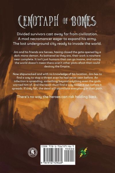 Divided survivors cast away far from civilization. A mad necromancer eager to expand his army. The lost underground city ready to invade the world. Jim and his friends are heroes, having closed the gate opened by a dark mana demon. As battered as they are, their work is nowhere near complete. It isn't just humans that can go insane, and saving the world doesn't mean there aren't other plots afoot that could destroy the Empire. Now shipwrecked and with no knowledge of his location, Jim has to find a way to stop a threat even he had never seen before. An infection is spreading, something beyond anything even the gods warned him of, and the team must find a way to cut it out before it spreads. If they fail, the dead will assimilate everything in their path. There's no way the heroes can risk holding back.