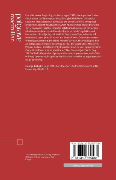 This is the first comprehensive account of the diversity and complexity of censorship practices in Italy under the Fascist dictatorship. Through archival material it shows how practices of censorship were used to effect regime change, to measure and to shape public opinion, behaviour and attitudes in the twenty years of Mussolini's dictatorship.